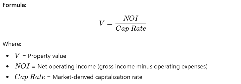 Limitations: Relies heavily on market-derived cap rates, which may fluctuate with interest rates and investor sentiment.