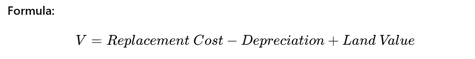 Application: Specialized or owner-occupied properties, institutional assets with limited market comparables.
