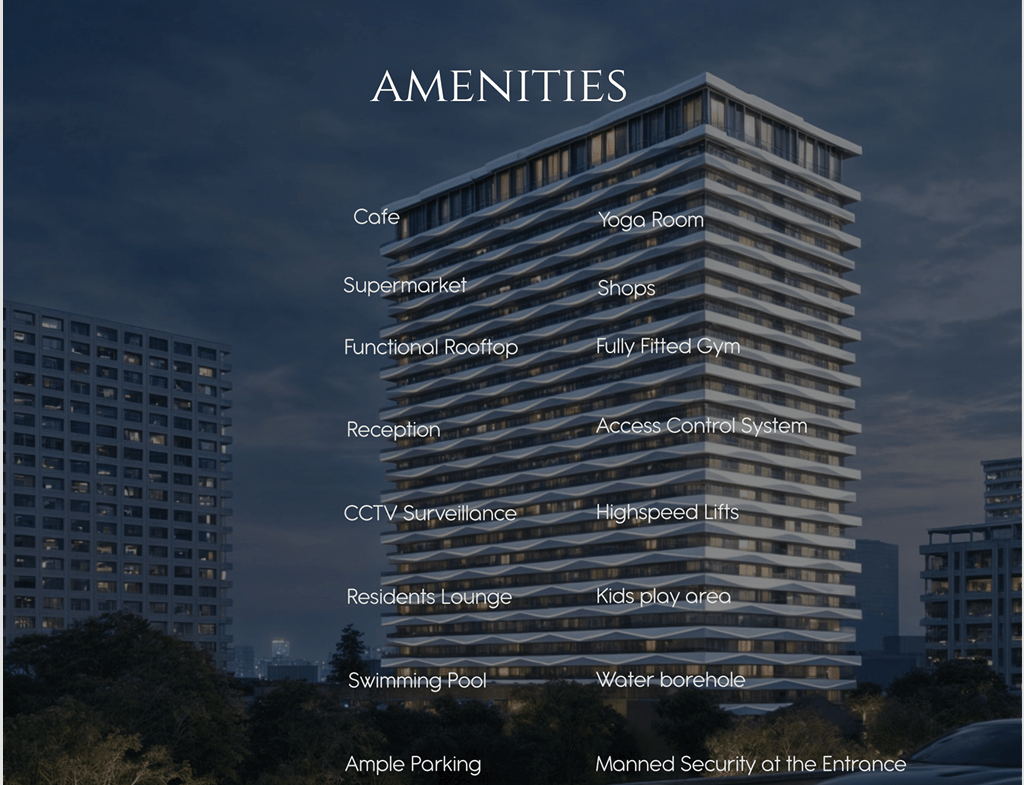 Welcome to an exclusive off-plan development offering contemporary apartments in one of Nairobi’s most prestigious addresses. Strategically located adjacent to the Global Trade Centre (GTC) and just minutes from major hotels, office towers, and the Nairobi Expressway, this residence redefines luxury and urban convenience.